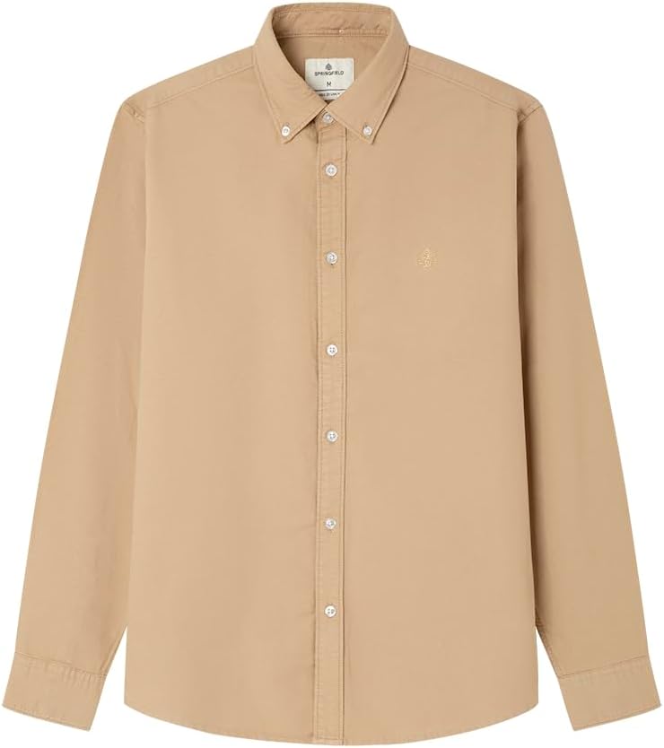 Camisa de la marca Springfield en tono beige, confeccionada en tejido Oxford con teñido de prenda que le da un aspecto suave y ligeramente desgastado. Ideal para looks casuales de primavera y verano, combina bien con pantalones chinos o jeans y puede usarse tanto en ocasiones informales como en entornos de trabajo con dress code relajado. Por su precio de 14,58€ representa una buena oportunidad para renovar el armario con una pieza versátil y de calidad a un coste reducido.