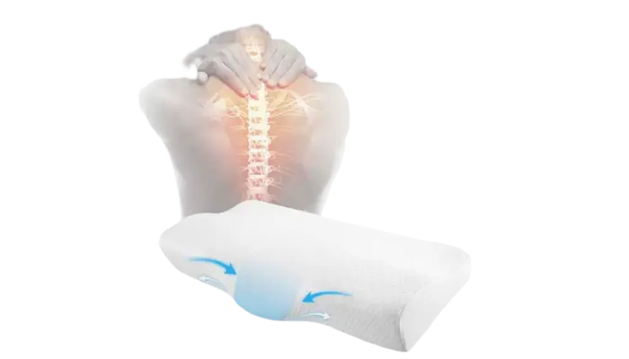 Almohada viscoelástica de forma mariposa que se adapta al cuello para aliviar tensiones. Precio bajo 10.49€ frente a 38.85€, ideal para mejorar el descanso.