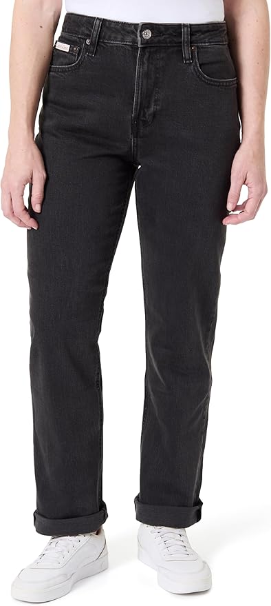 Jeans Calvin Klein Essential para mujer, modelo LV047B909G, de corte recto y talle alto en color negro. Estos pantalones están confeccionados en algodón elástico que brinda comodidad y durabilidad para uso diario o ocasiones casuales. A tan solo 22,27€ representan un ahorro significativo frente al precio habitual de esta marca premium, convirtiéndolos en una oportunidad de compra excelente.