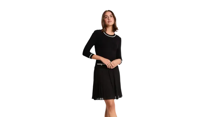 Vestido corto plisado de Morgan con ribetes a contraste. Perfecto para dar un toque de estilo sofisticado al look diario.