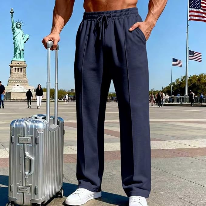Pantalones casuales azul para hombre, con ajuste holgado y pierna ancha. Cintura elástica con cordón para comodidad todo el día.