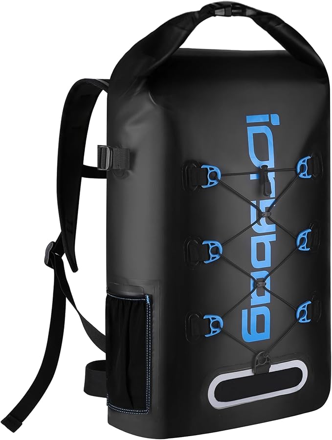 Mochila totalmente impermeable IDRYBAG diseñada para kayak y aventuras acuáticas, mantiene el interior seco incluso si se sumerge. Cuenta con bolsillos internos, correas ajustables y materiales resistentes para organizar y proteger tus pertenencias.
