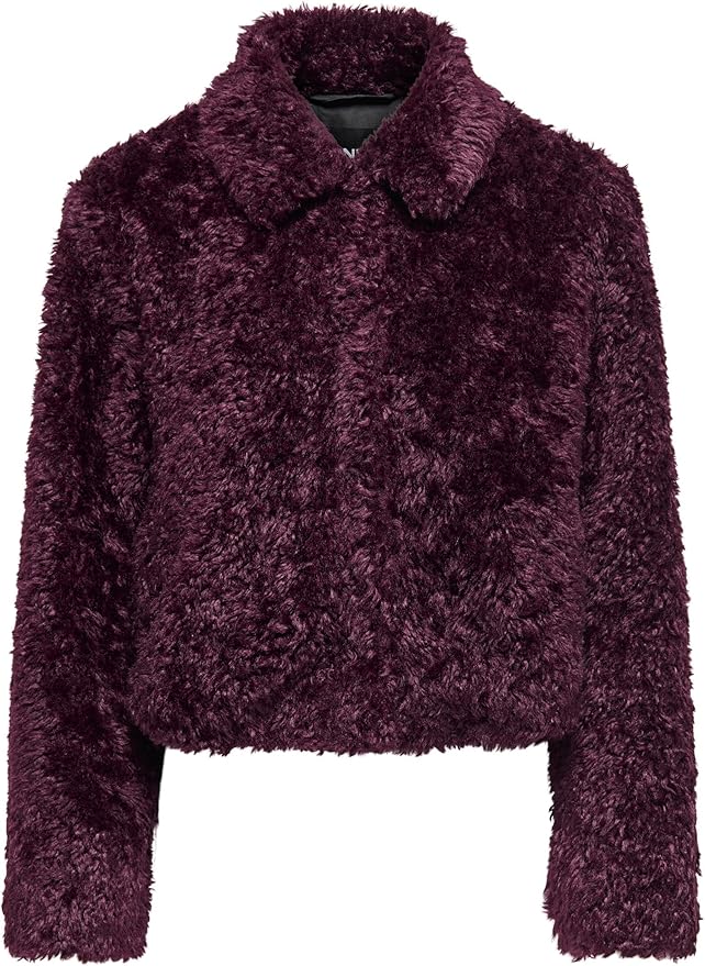 Chaqueta de peluche de la marca ONLY, diseñada específicamente para mujer. Presenta un suave interior de felpa que brinda calor y comodidad en los días fríos, mientras que su exterior en tono malva vino aporta un toque de estilo y tendencia. Ideal para usar tanto en looks casuales como en ocasiones más arregladas, esta prenda combina funcionalidad y moda a un precio accesible.